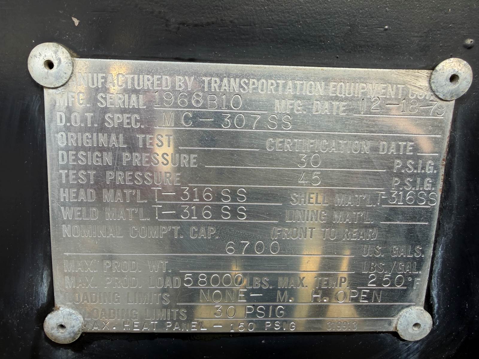 1980 TEC 6700 GALLON - STAINLESS - REAR DISCHARGE Non Code Tank Trailer