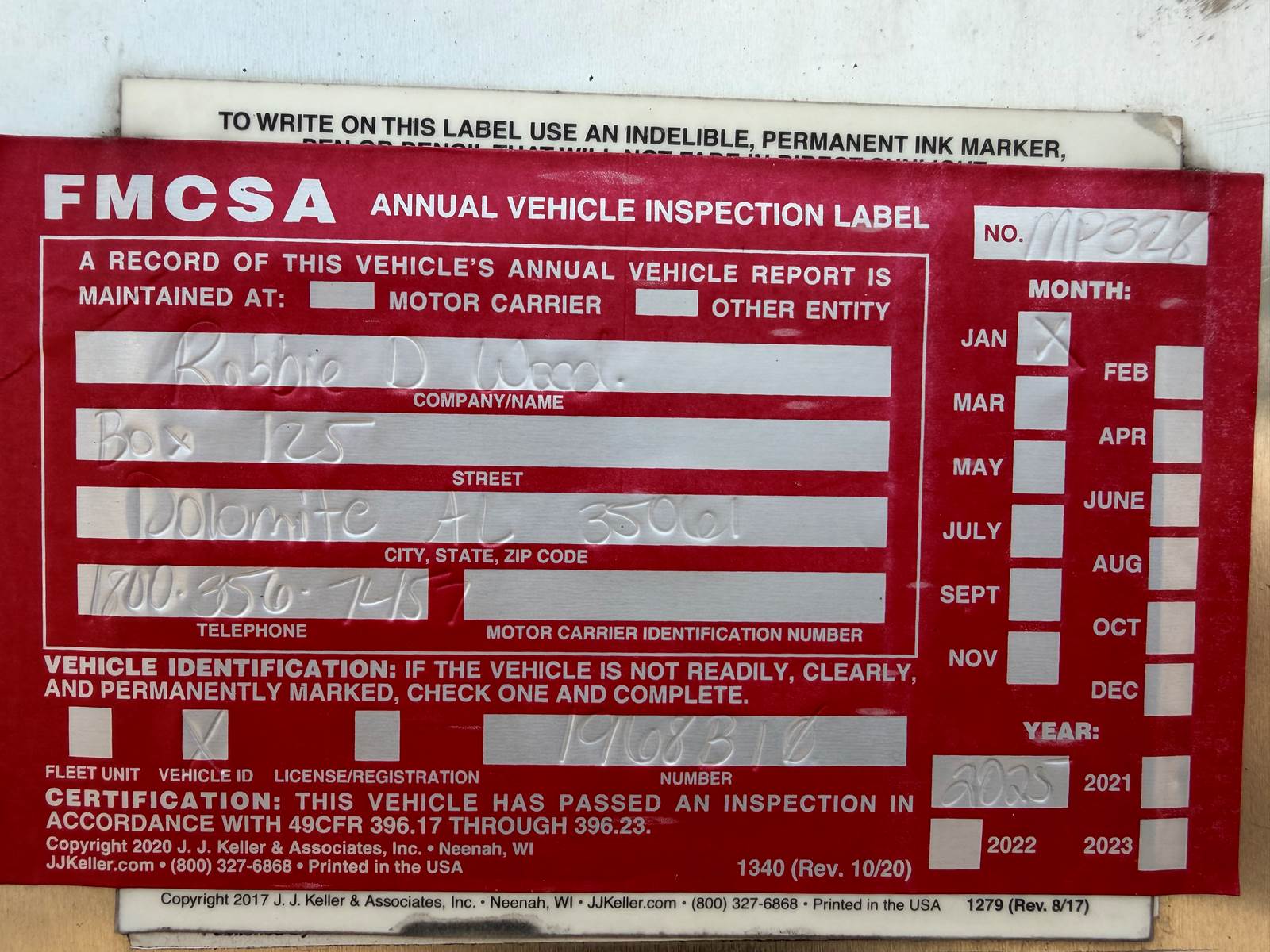 MFG Serial # 1968B10