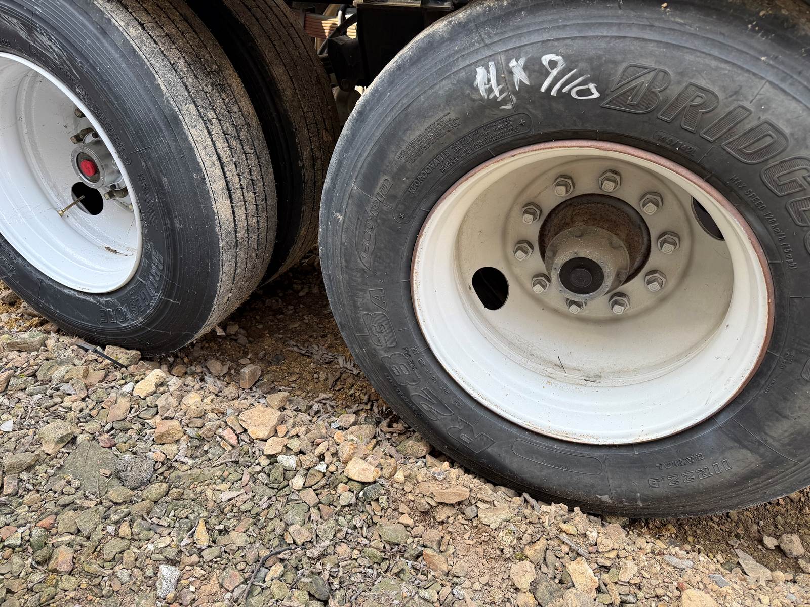 11R22.5 tires / 1 Tire @ 11/32nds / 3 tires @ 10/32nds / 3 tires @ 9/32nds / 1 @ 6/32nds